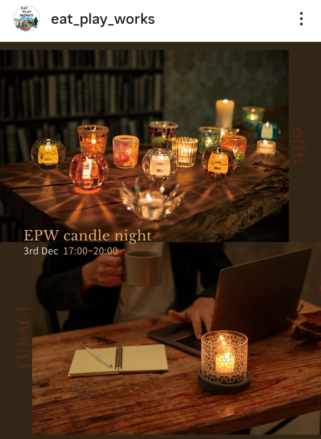EAT PLAY WORKSのラウンジが、やわらかなキャンドルの光と香りに包まれる夜。