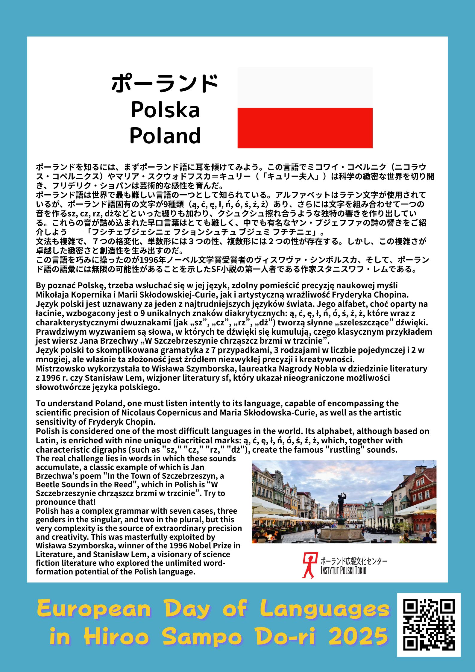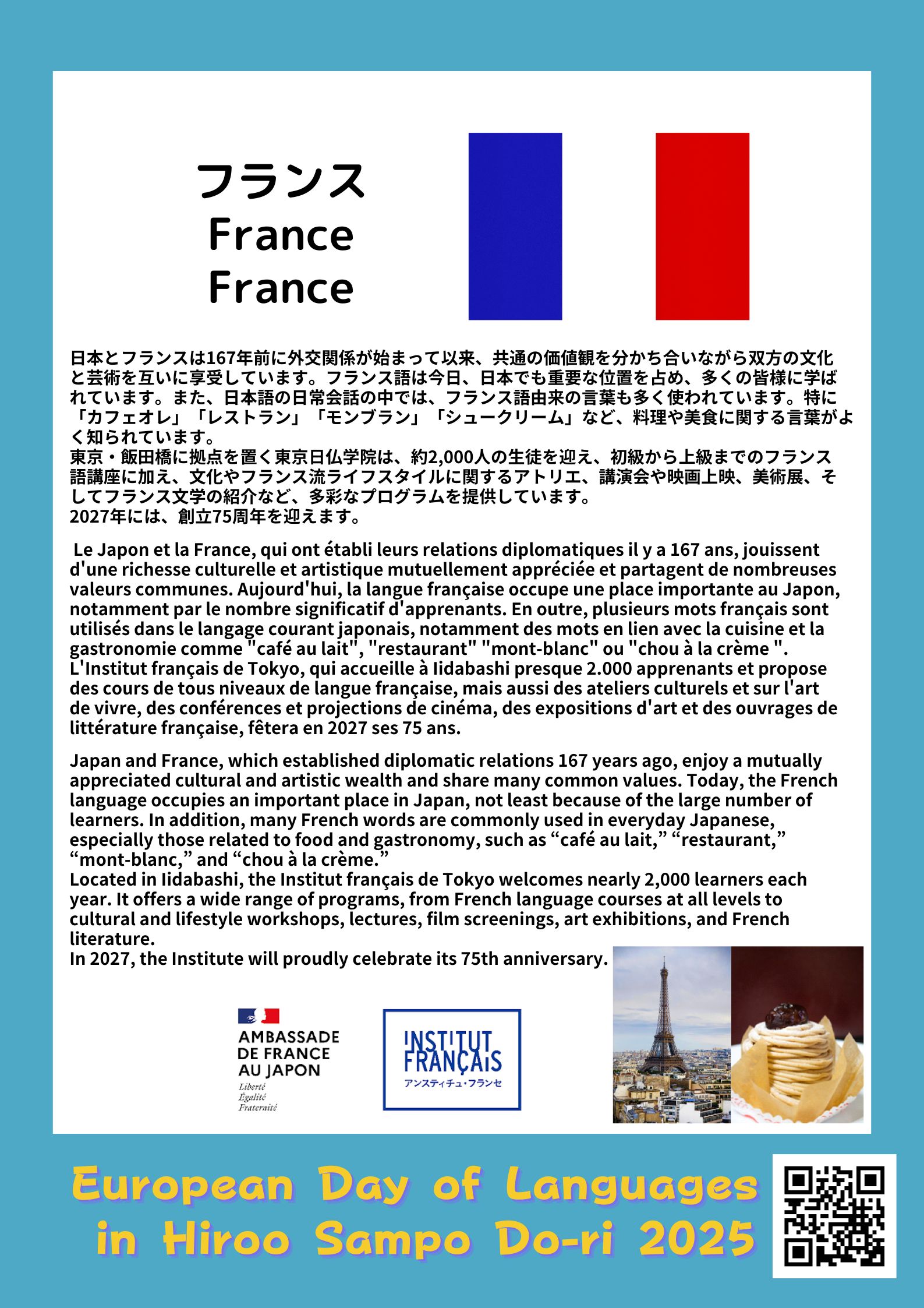 European Day of Languages in Hiroo Sampo Do-ri 2025に参加している各国のポスターを掲載いたします。