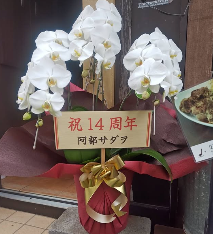 ブランドコレクト広尾店の角を横丁に入ったところにある広尾のカレーをこよなく愛してやまない阿部サダヲさんからは、今年も『祝14周年』のお花が届いています。本当にありがたいですね。