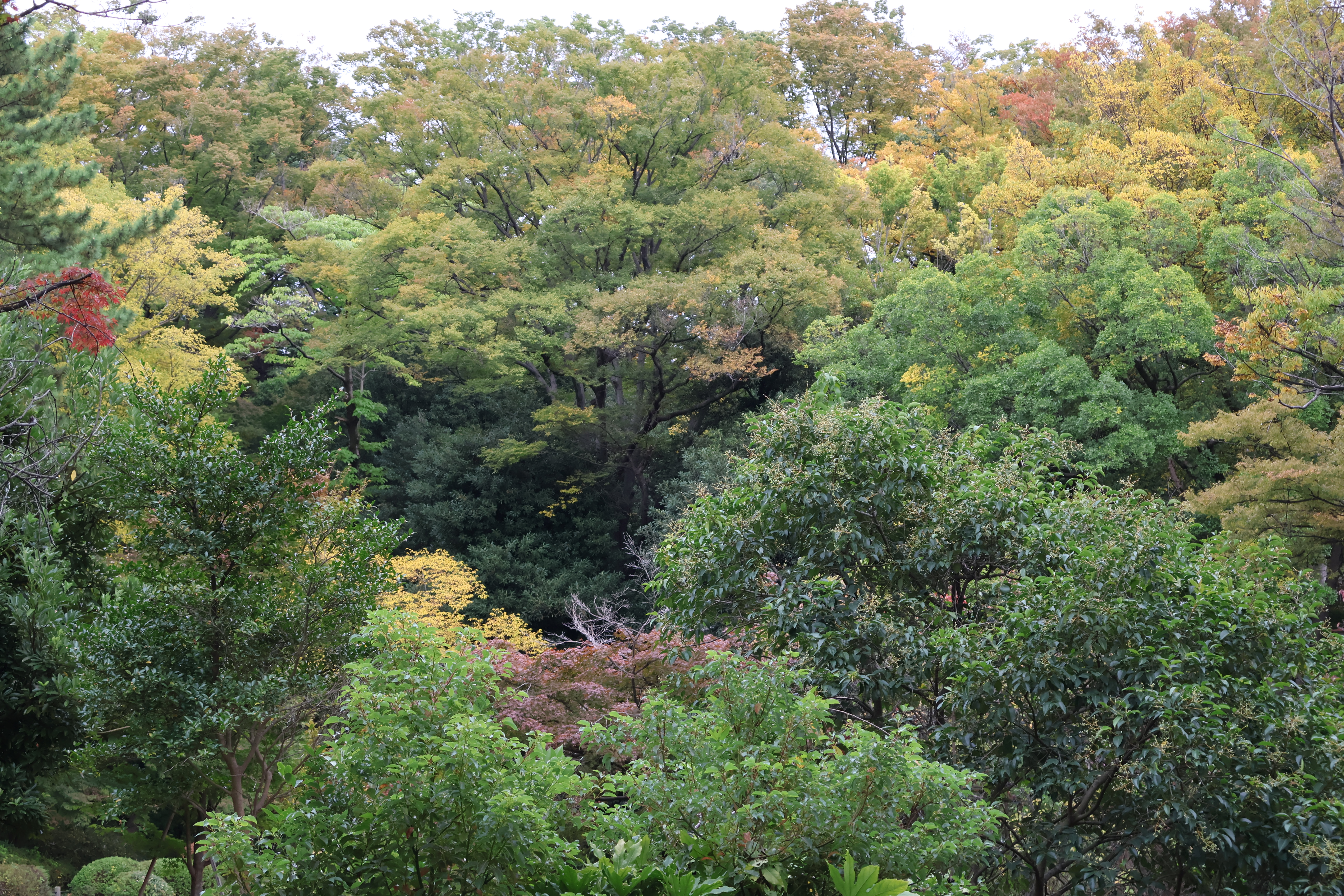 高低差のある麻布台地にある公園だからこそ楽しめる樹々の重なりが作り出す色彩のグラデーション。