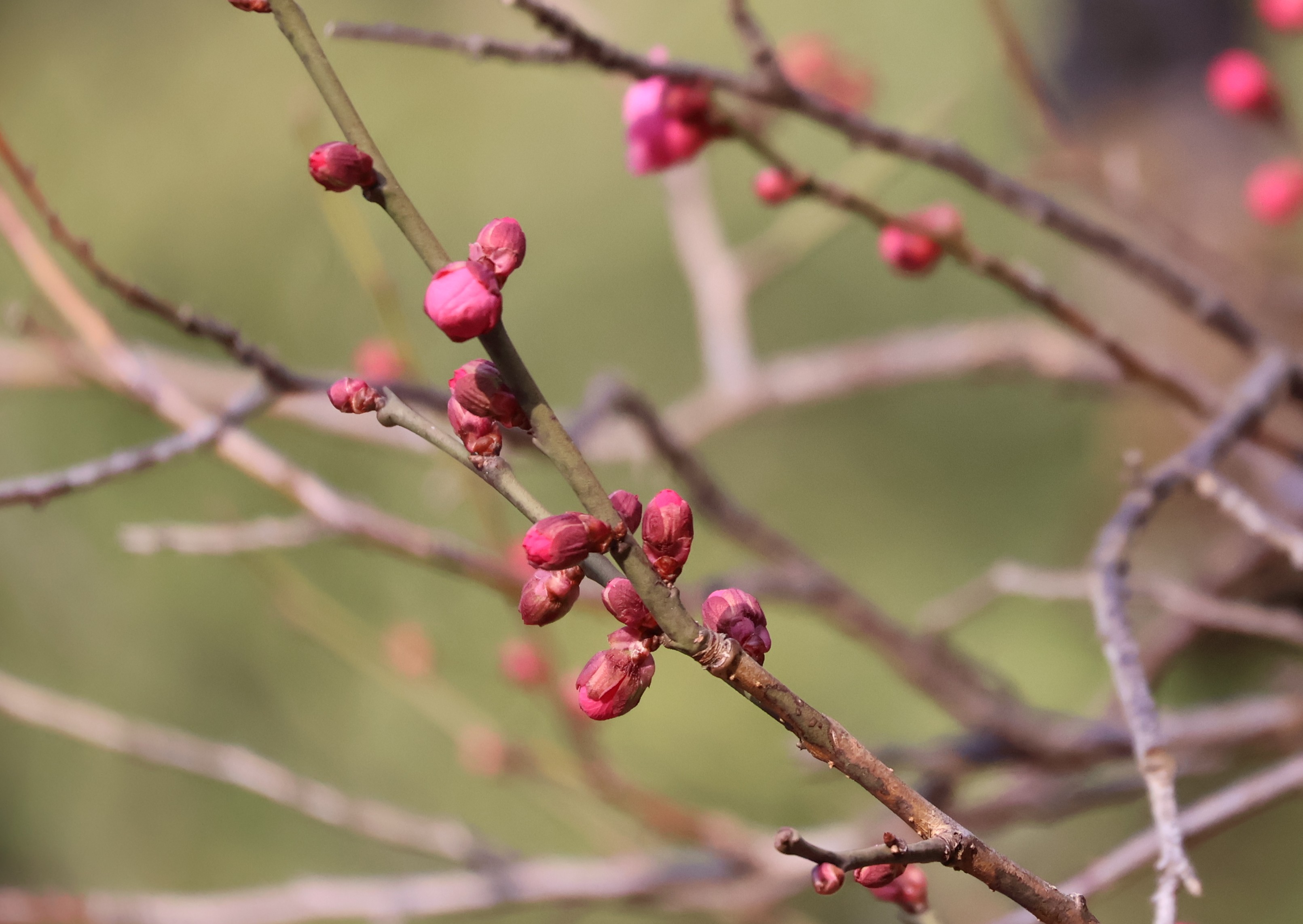 白梅より後に開花する紅梅は、ところどころで咲き始めてはいますが、ほとんどはまだまだ蕾の状態。