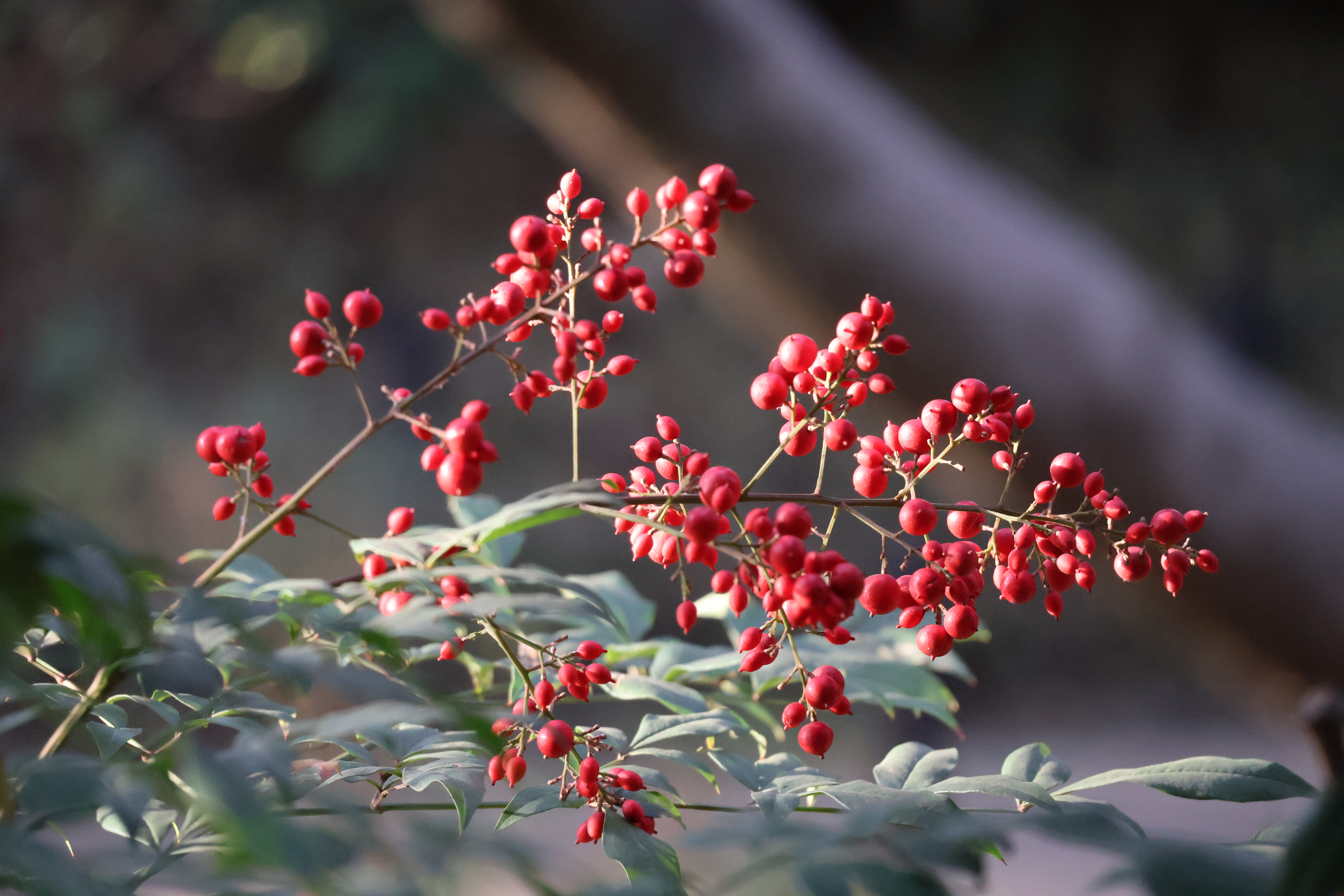 「難を転じる」との語呂合わせから縁起物として庭先に植えている方も多いナンテン。太鼓橋の近くで見つけました。落ち着いた緑と赤はやはりこの時期ならではですね。