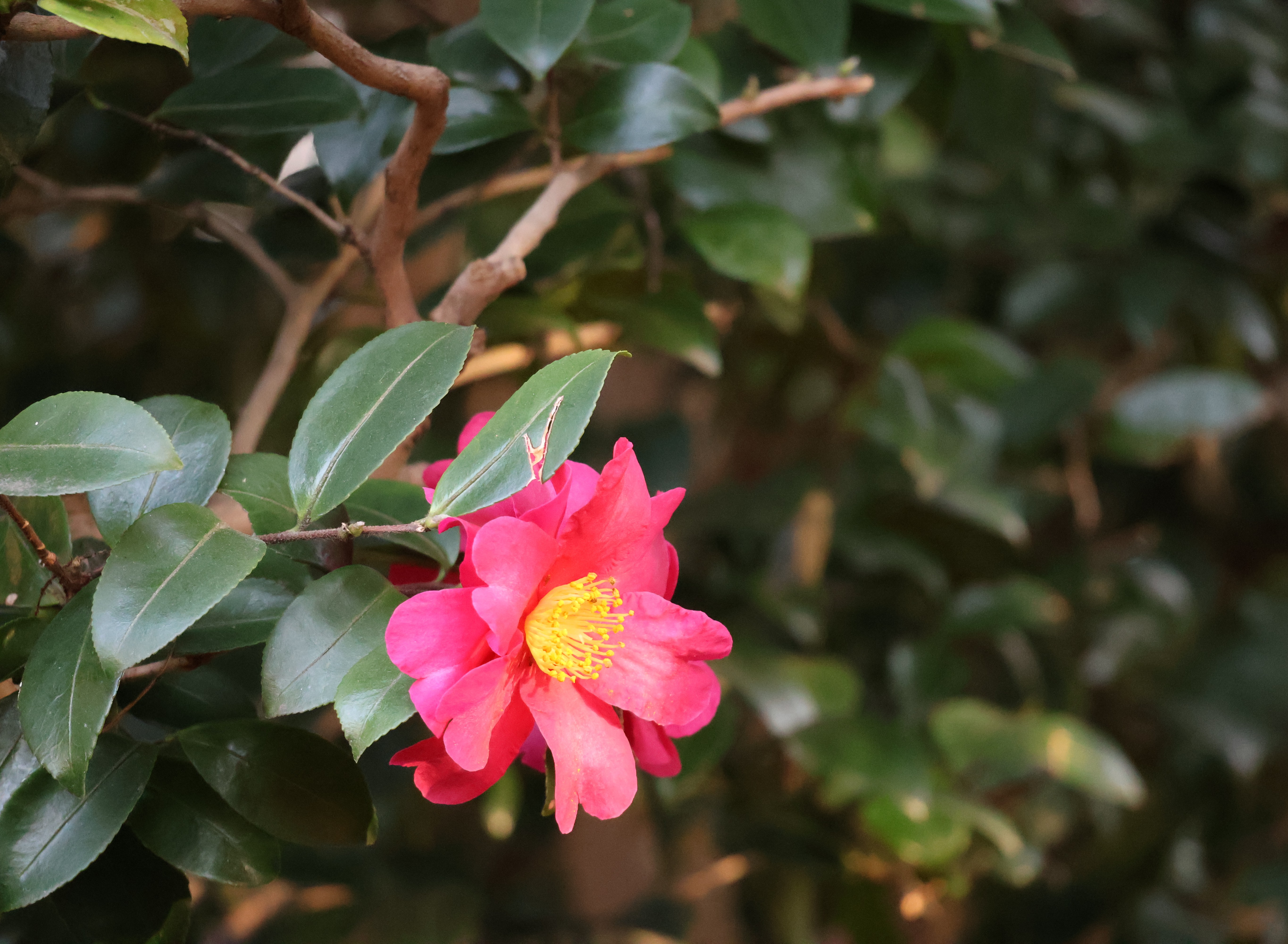 三軒家口の近くで咲く冬を代表する山茶花。一輪だけでも季節を感じます。