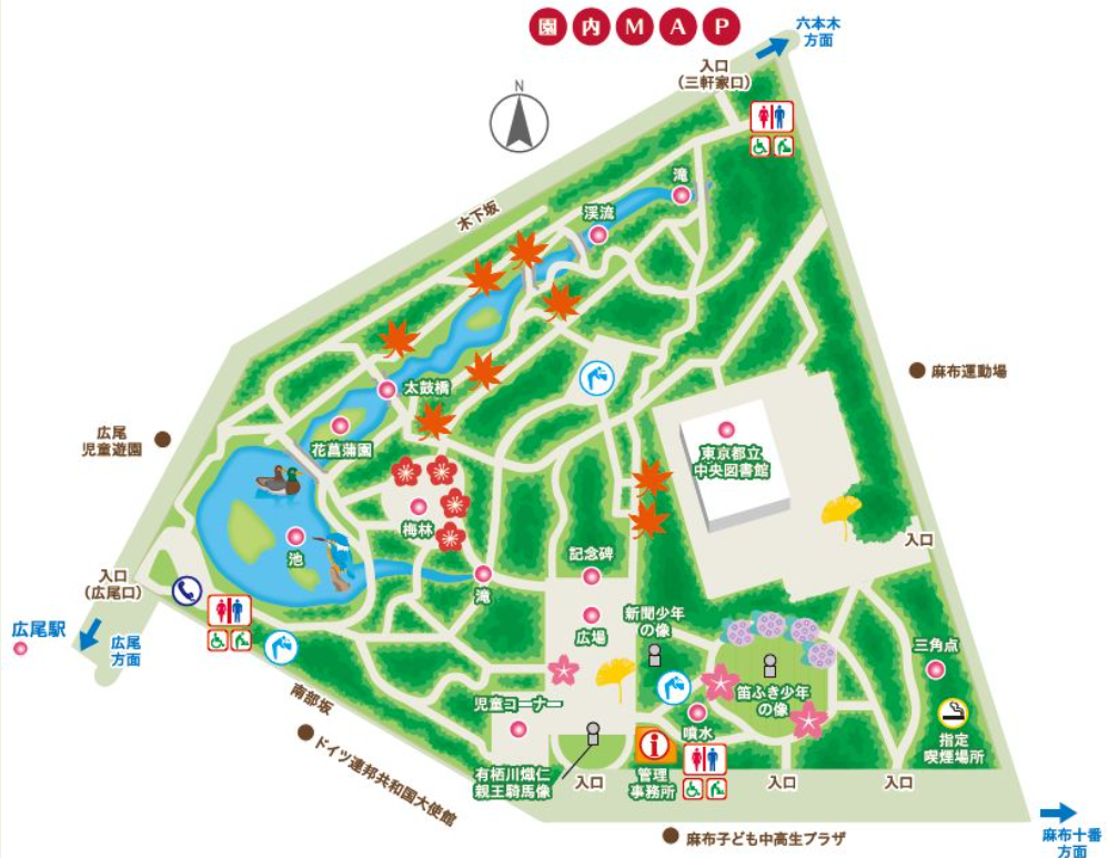 四季折々の自然を楽しめる有栖川宮記念公園は広尾散歩通りから徒歩2分。