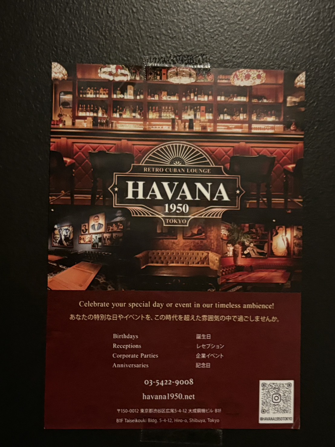 広尾の地下に広がる1950年代のキューバを再現した空間。まるでタイムスリップと瞬間移動を同時に受けた衝撃を覚える。