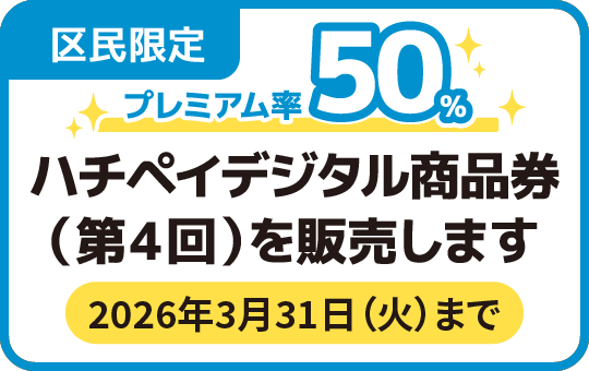 プレミアム率50%の「ハチペイデジタル商品券(第4回)」販売中!