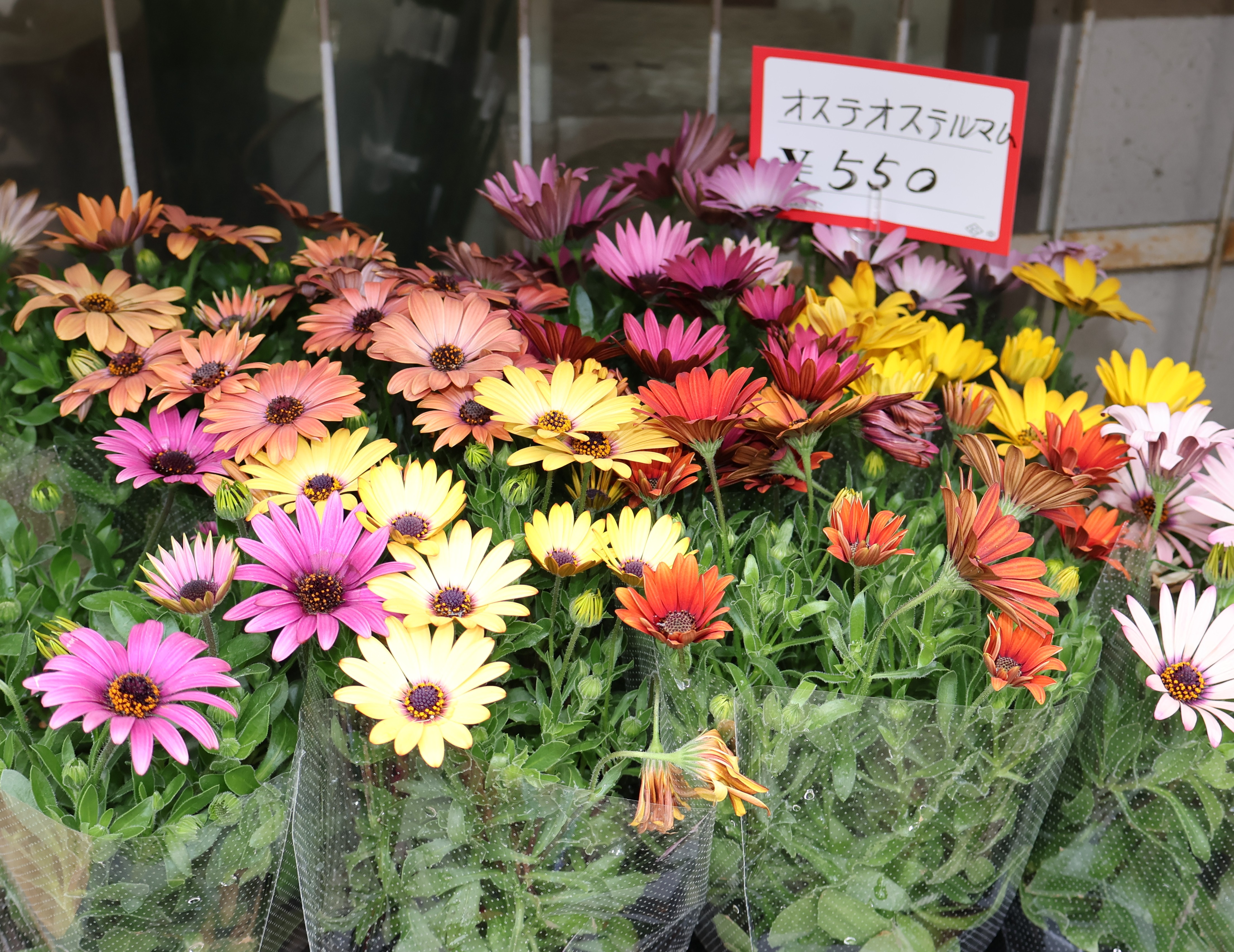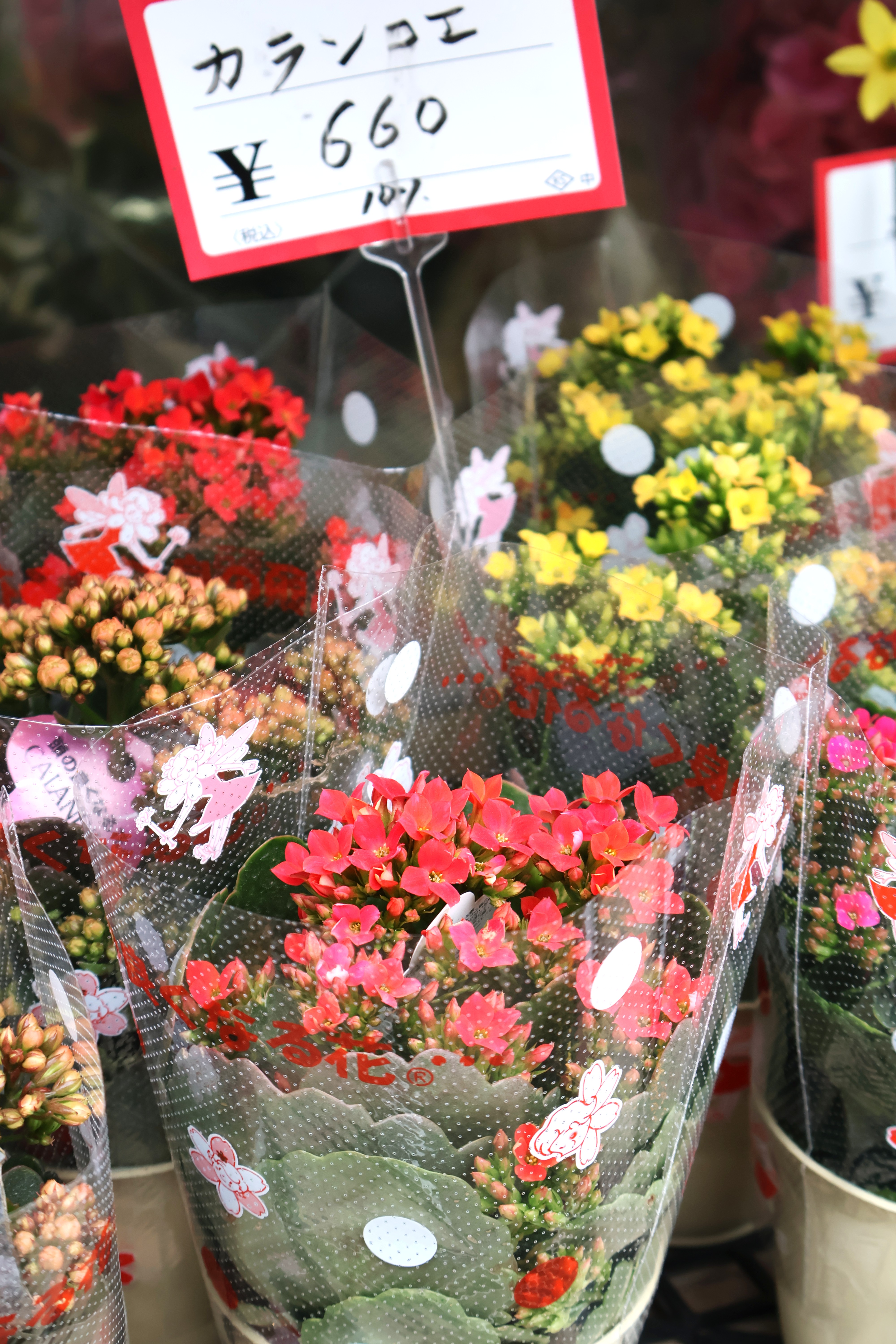 花寅商店では色とりどりのお花に囲まれながら、いつもニコニコやさしい女将さんとの会話にホッコリします。