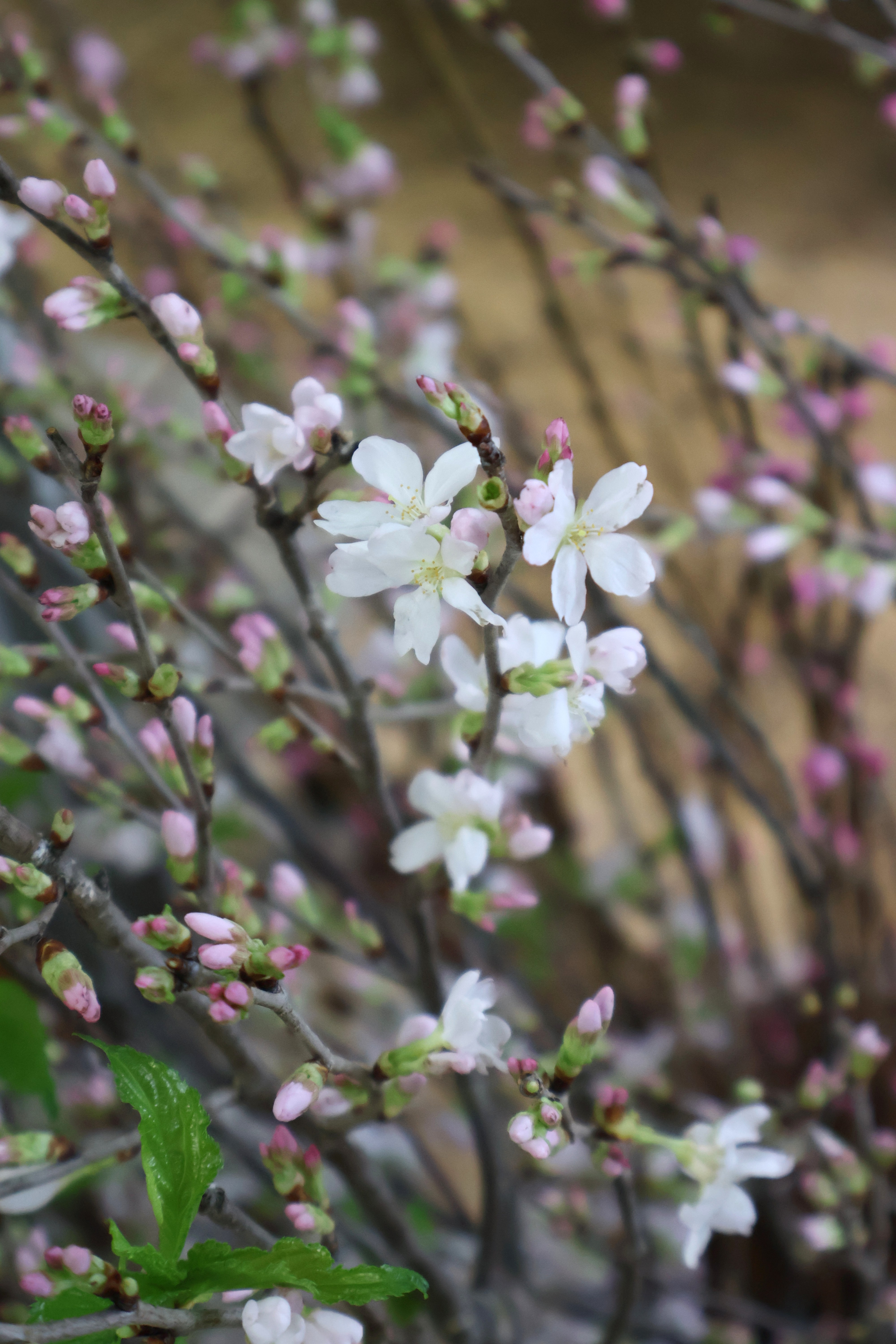 店内に入ってすぐ、ソメイヨシノより一足早く届き、薄紅色の可憐な花をつける彼岸桜が置かれていました。