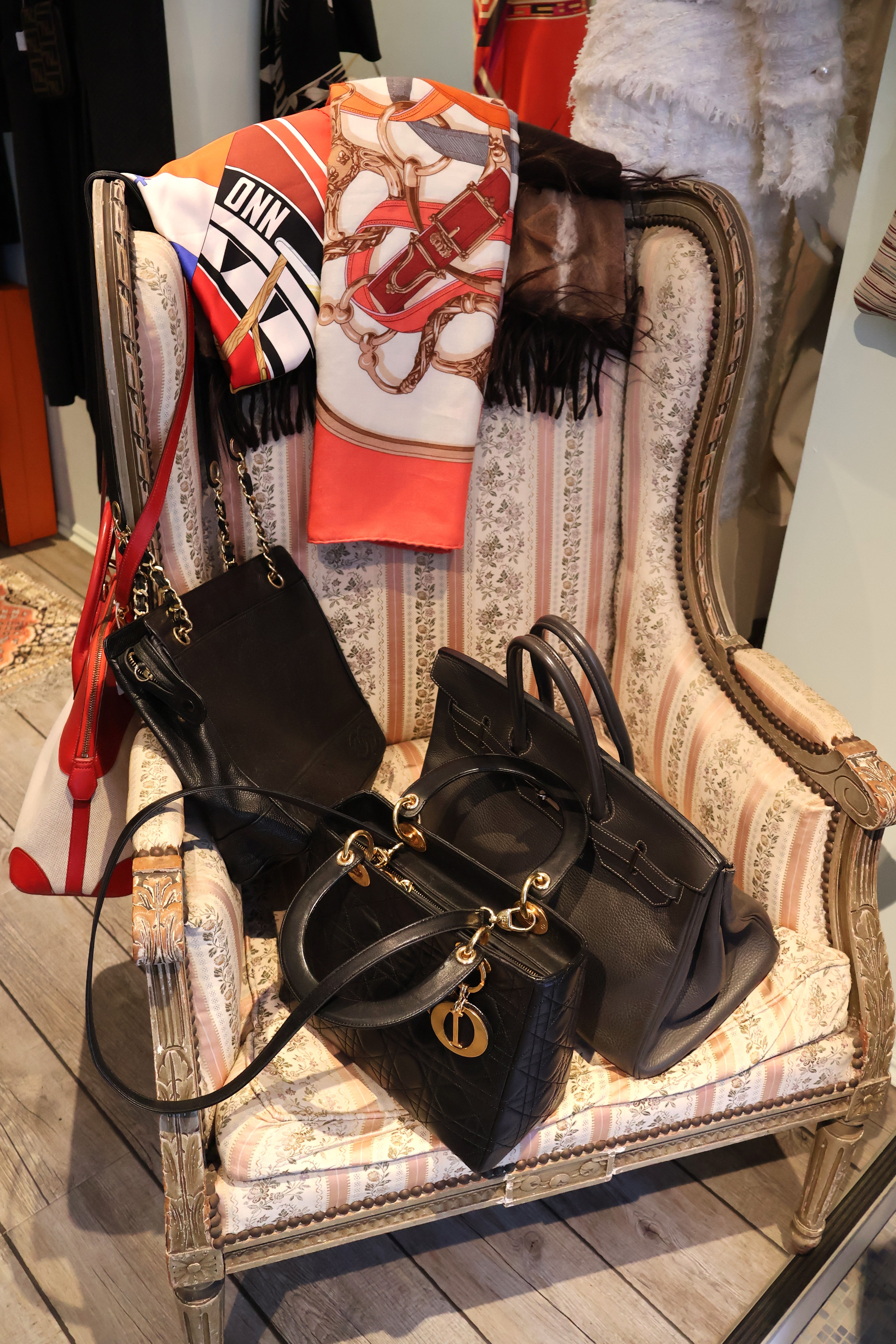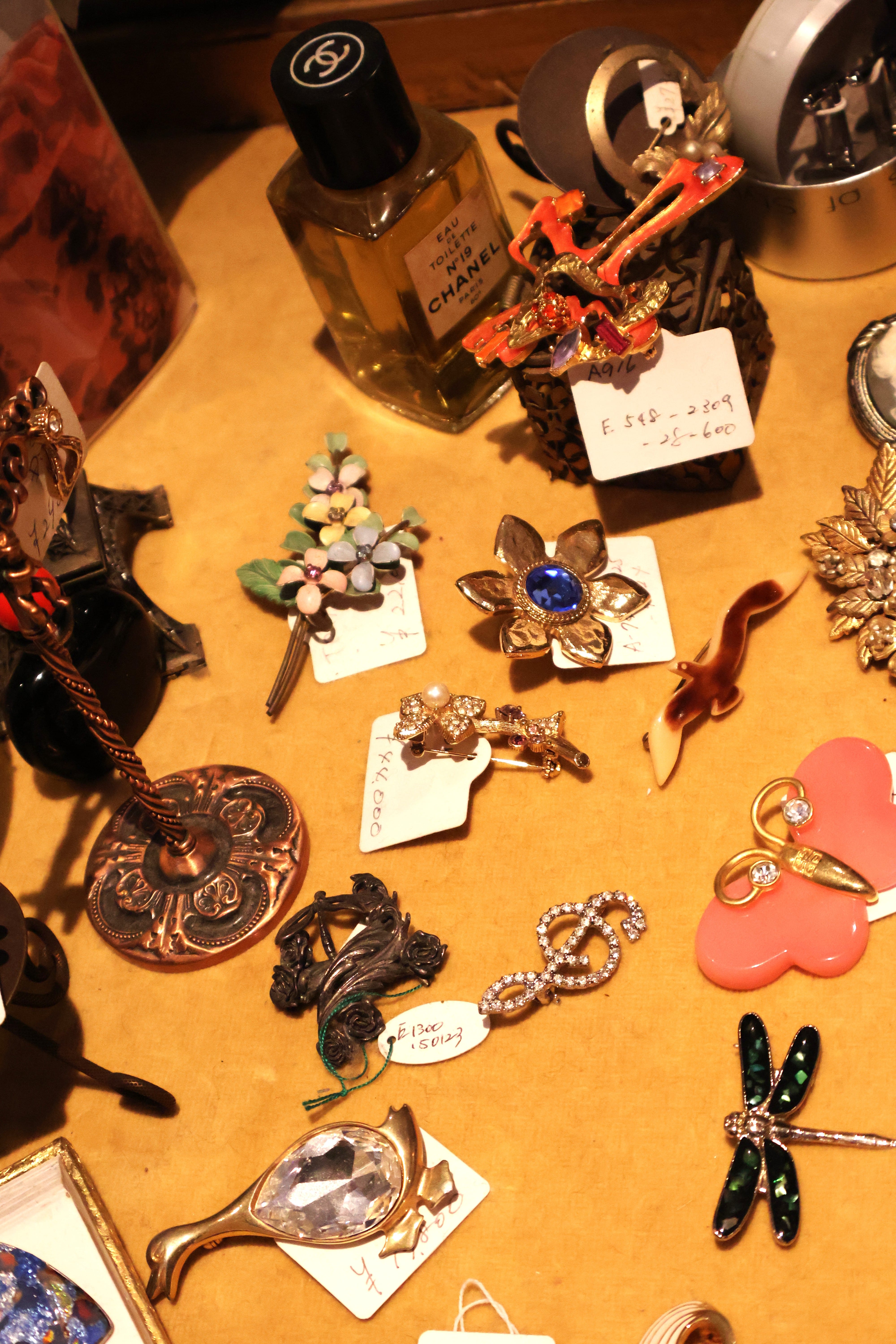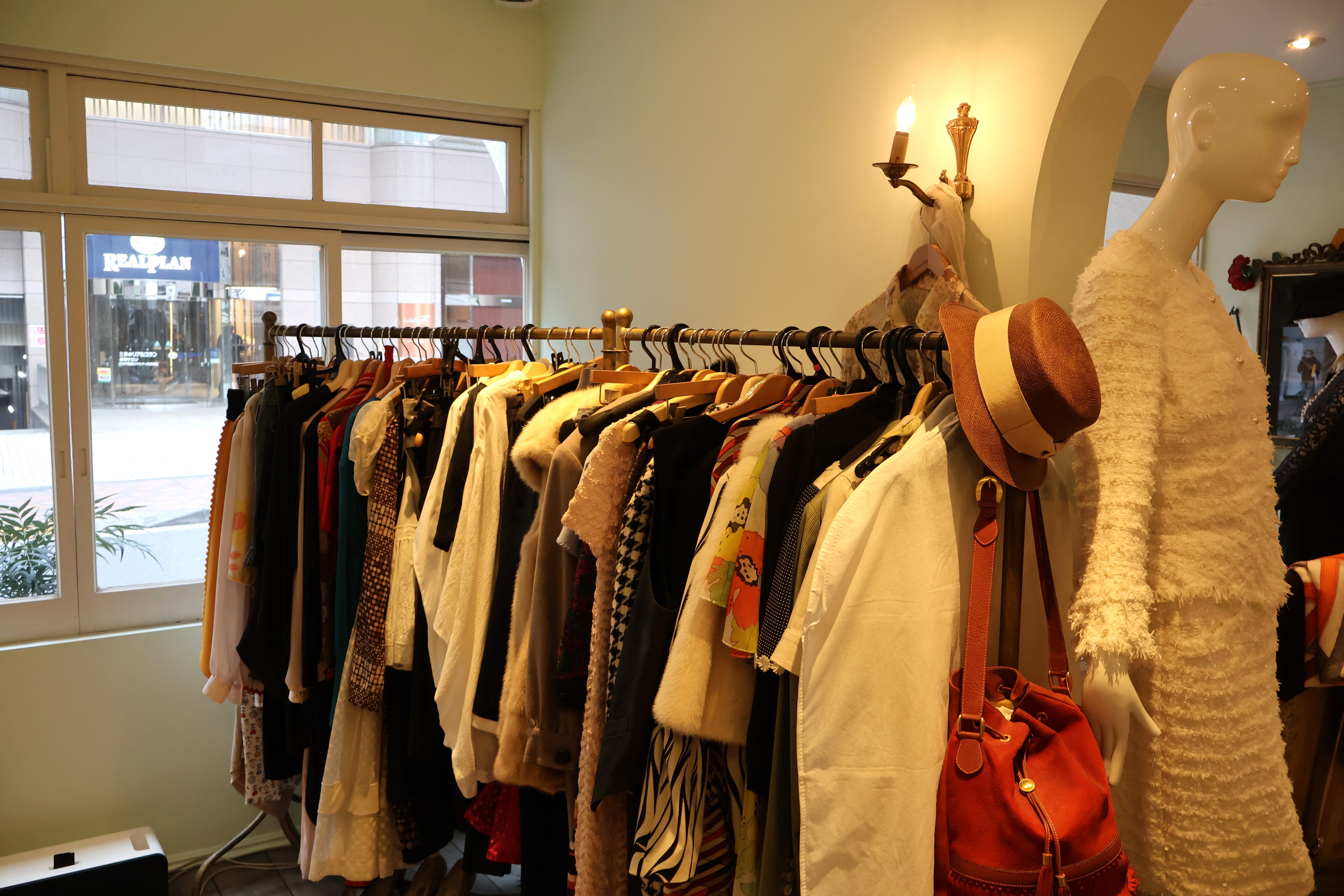 エルメスやシャネルなど超有名ブランドからノンブランドまで、さまざまなバッグ、洋服、コスチュームジュエリーが大切に飾られています。
