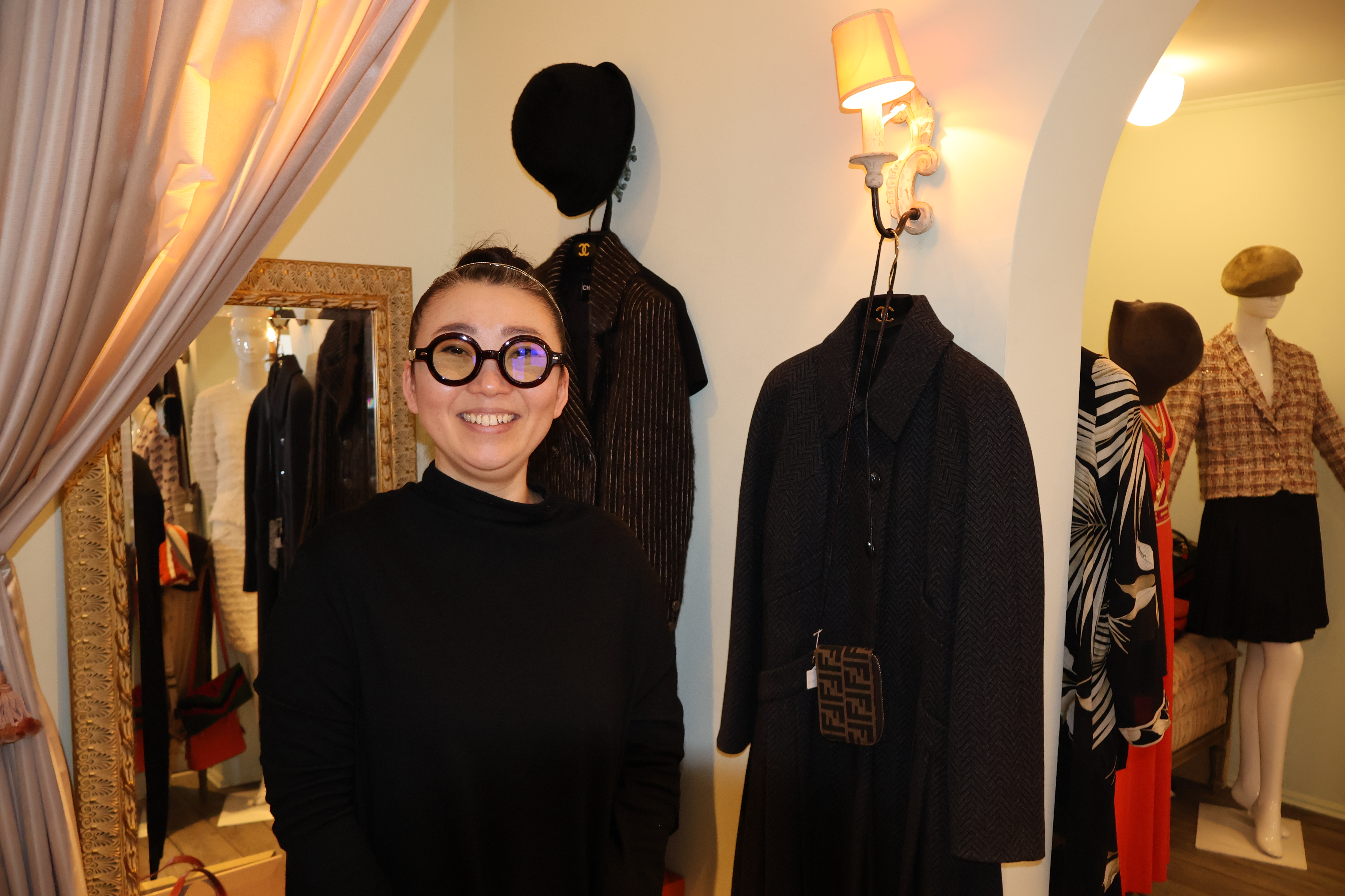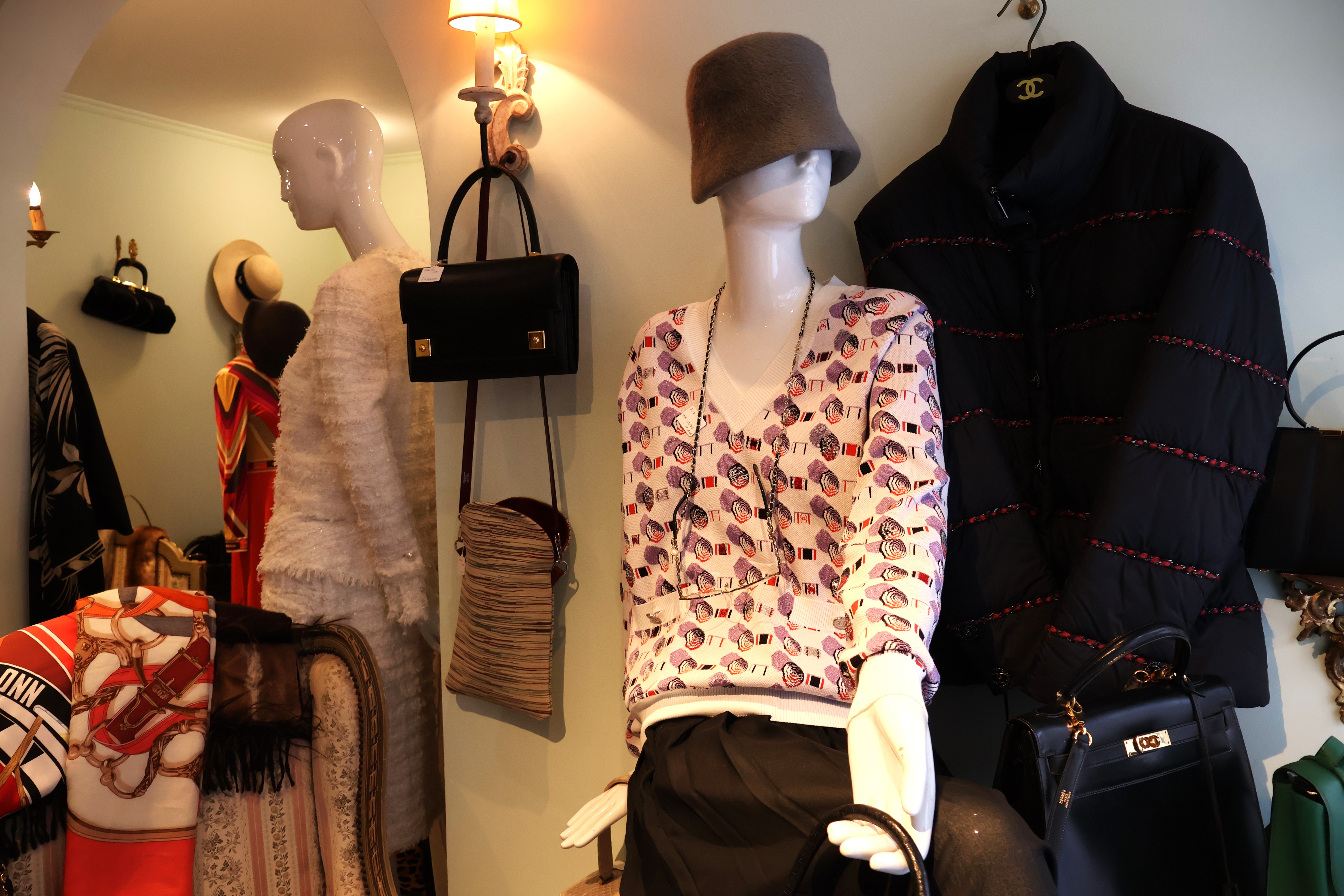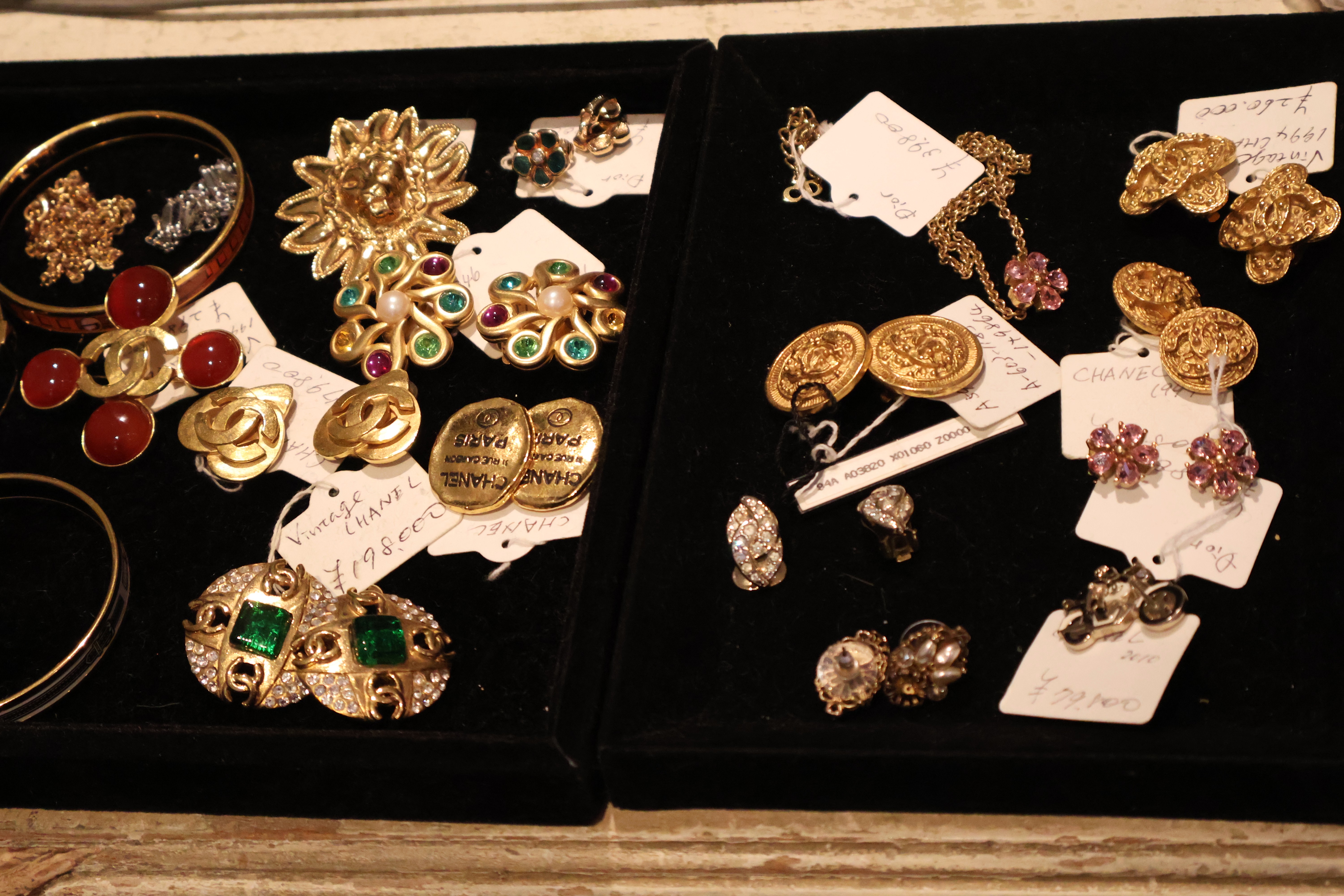 エルメスやシャネルなど超有名ブランドからノンブランドまで、さまざまなバッグ、洋服、コスチュームジュエリーが大切に飾られています。