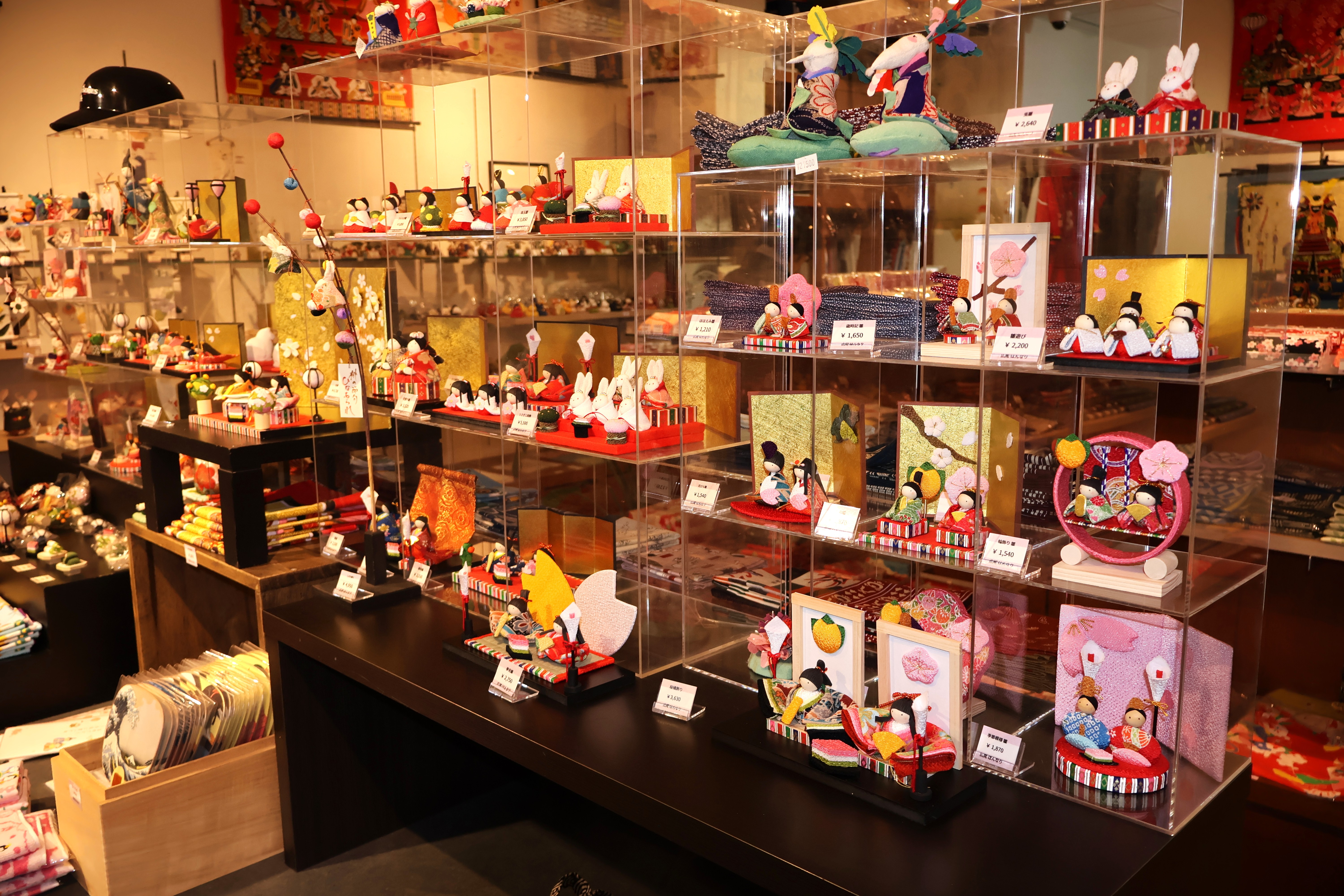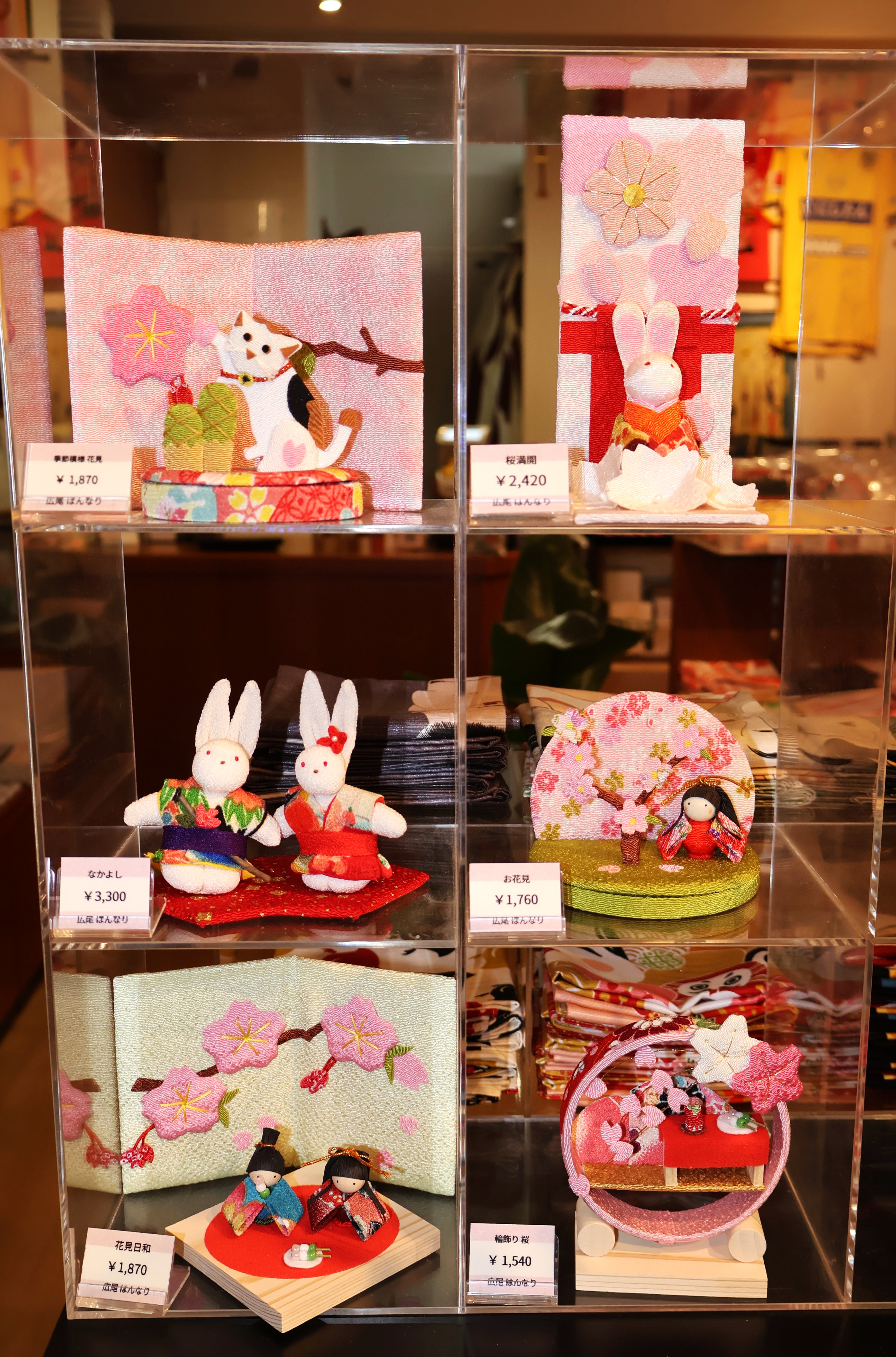 たくさんの可愛らしいお雛様と共にサクラをテーマにしたちりめんの飾り物が並んでいました。
