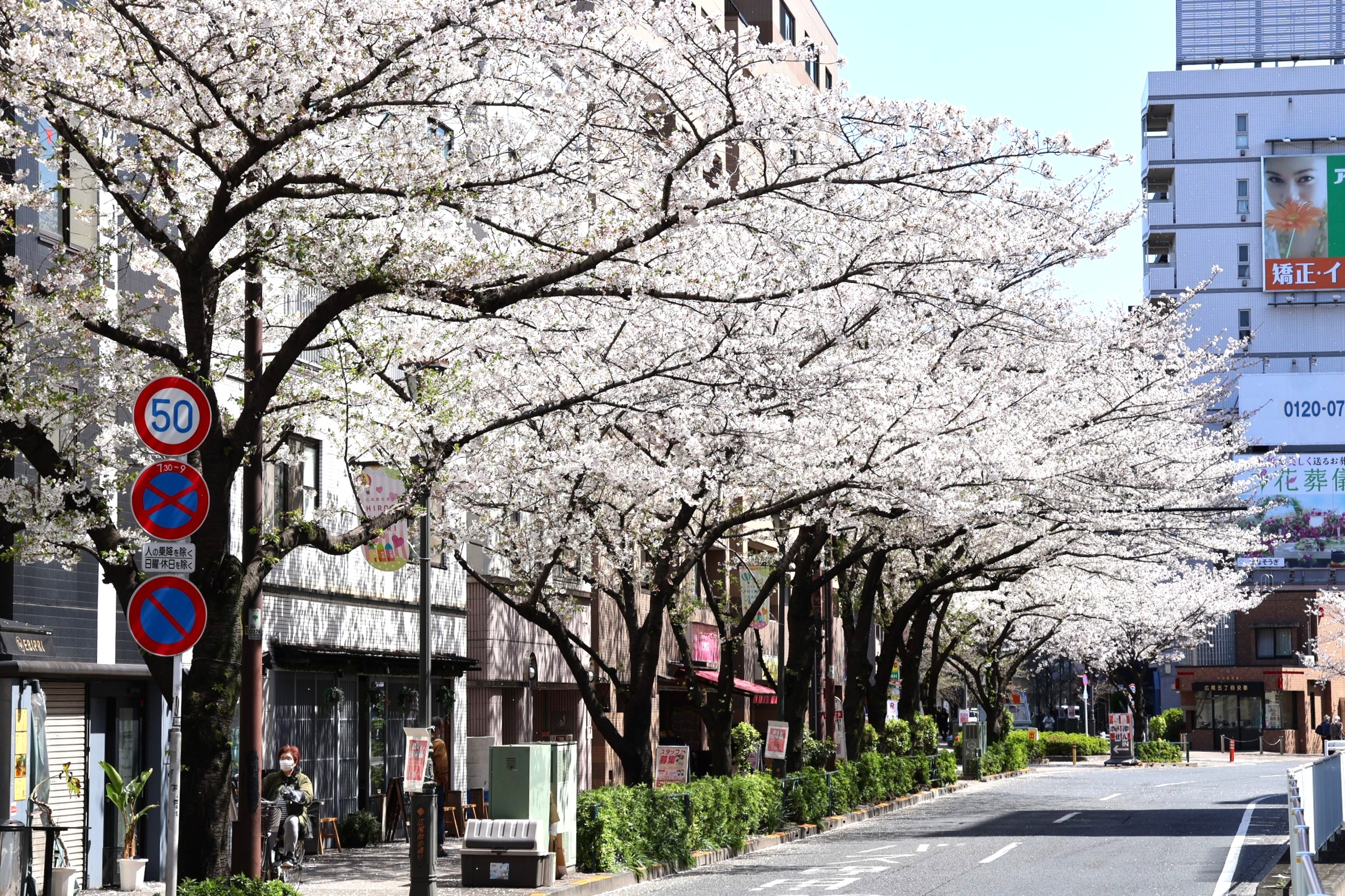 都内でも有数のお花見スポットである明治通り沿いの当店。