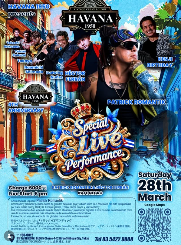 番組では、広尾に新たな文化を花開かせ、今月も楽しみな数々のバンドのライブが予定されているHAVANA1950についてたっぷりとお話を伺います。