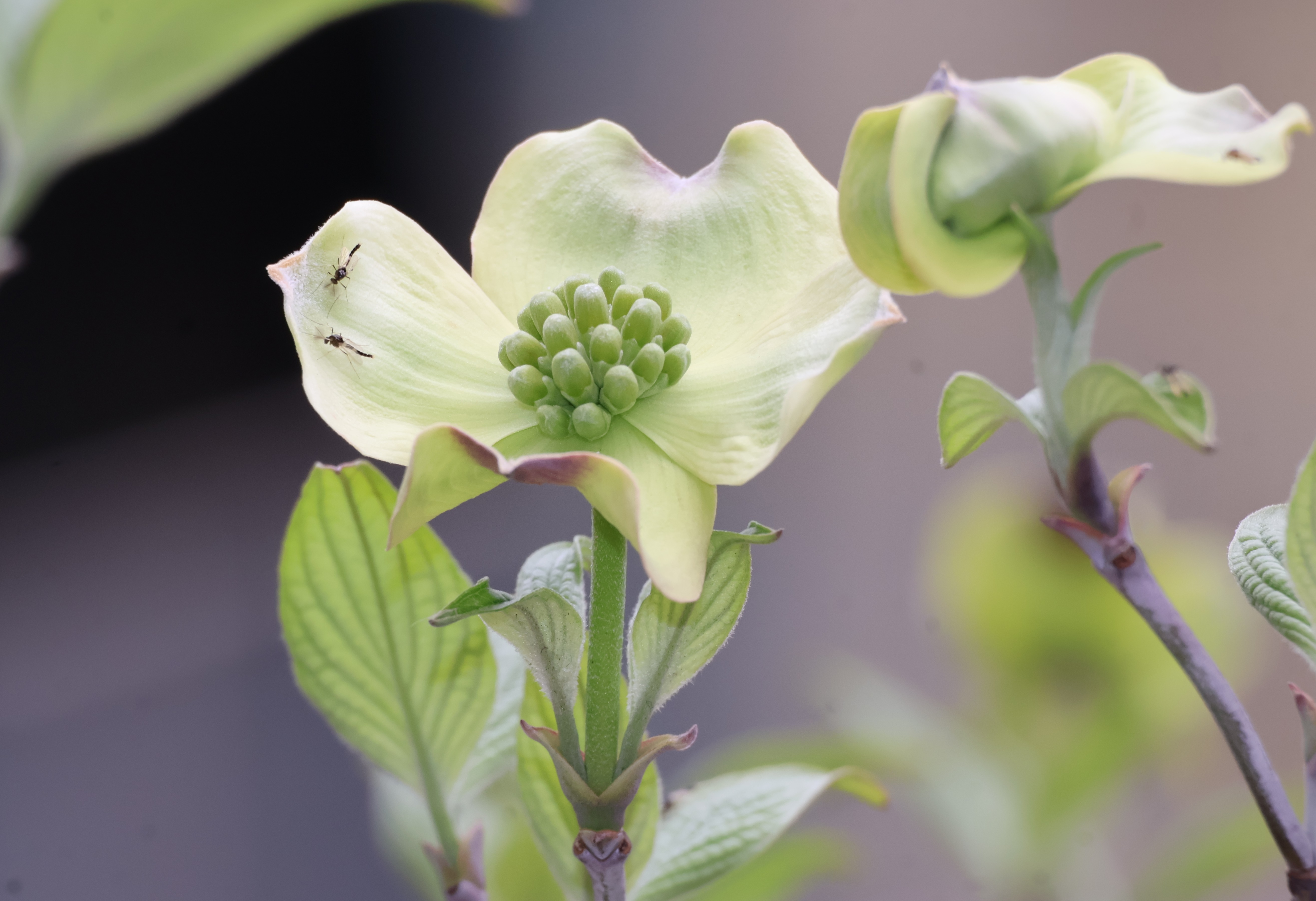 ご存じ通り、まわりの花びらに見える部分は総苞片と呼ばれる葉です。色は木によってそれぞれ。