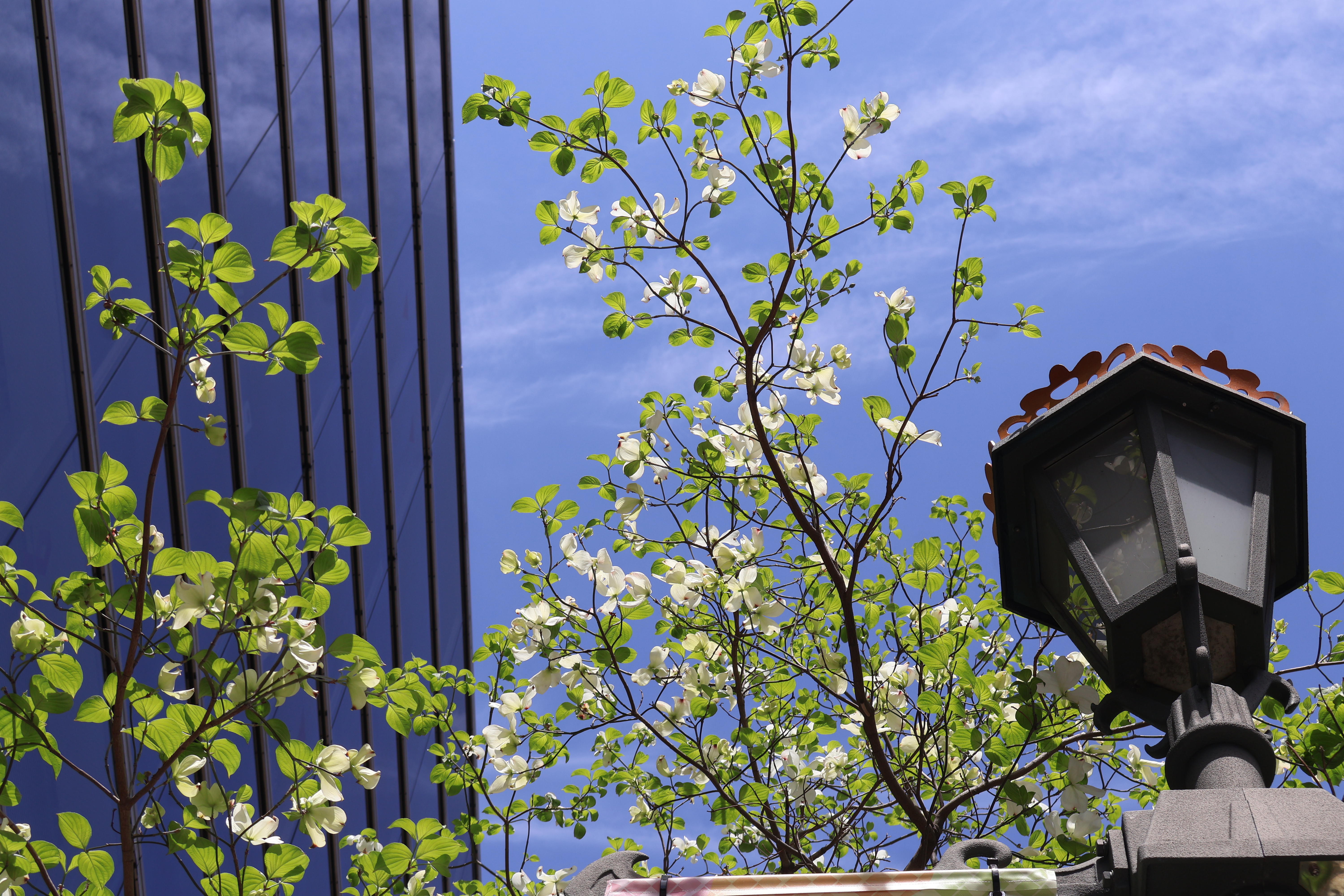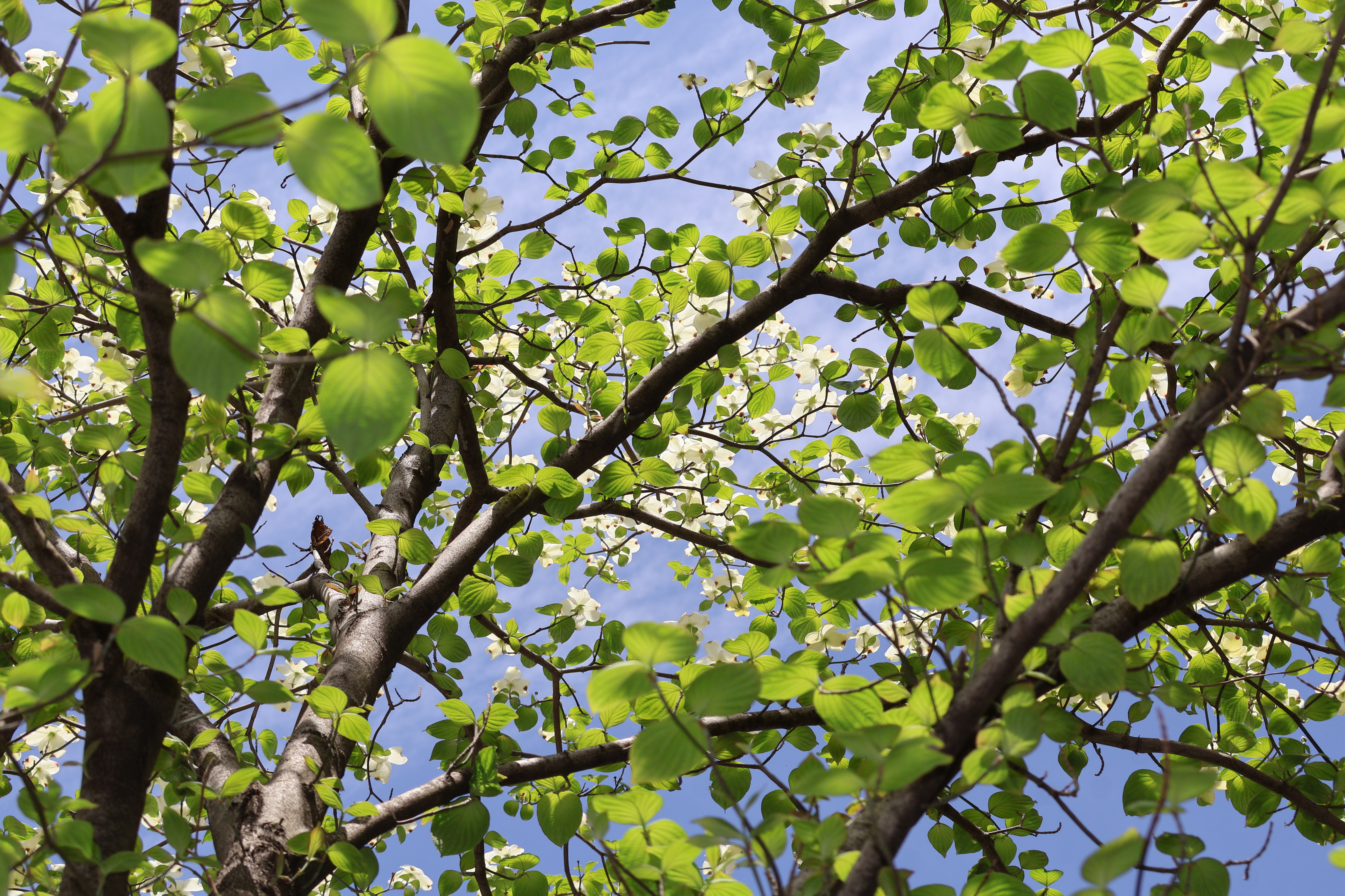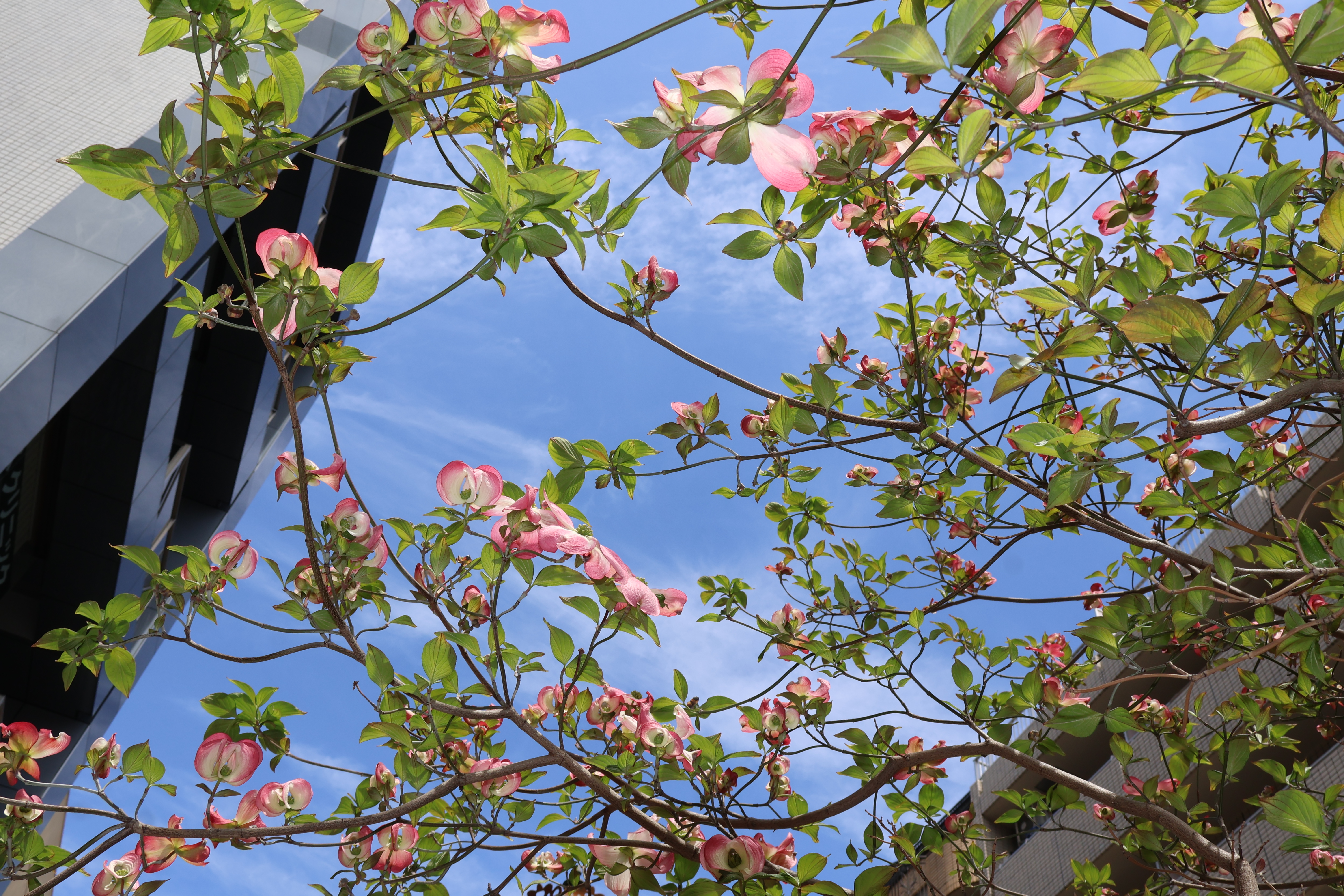 本来は上から眺めた方がハナミズキの美しさを満喫できますが、青空を背景に下から見ても本格的な春の訪れを感じられ愛おしく感じます。