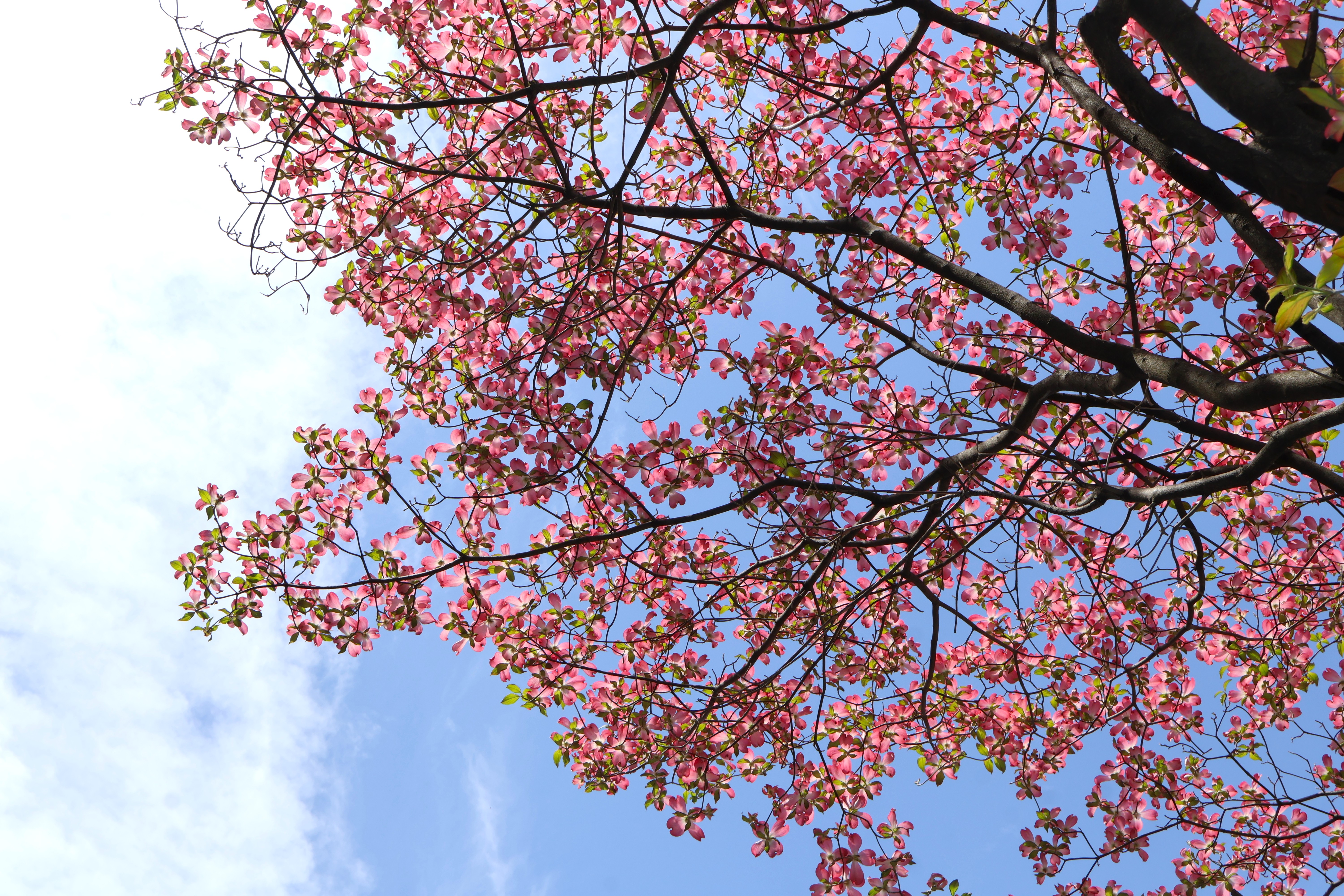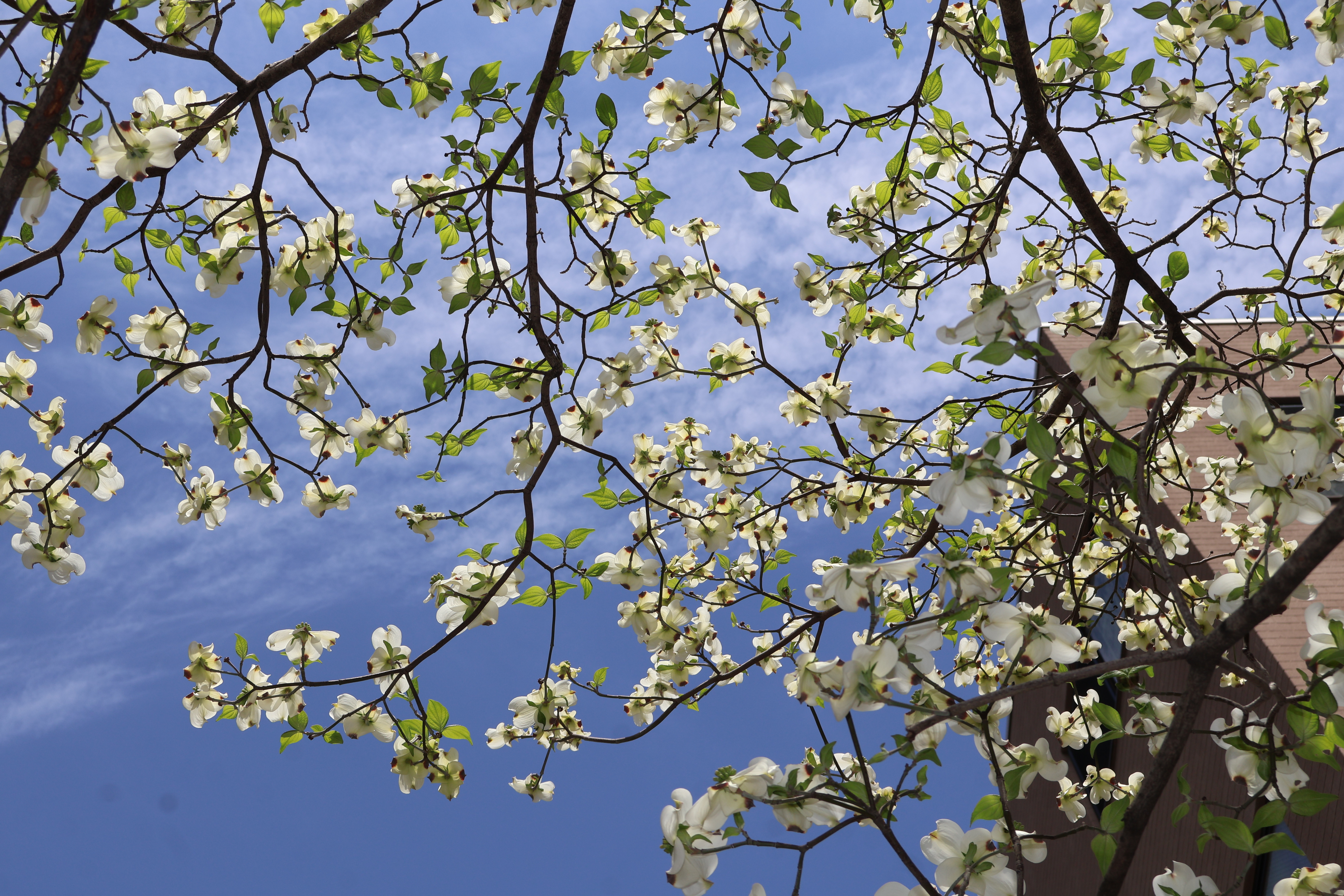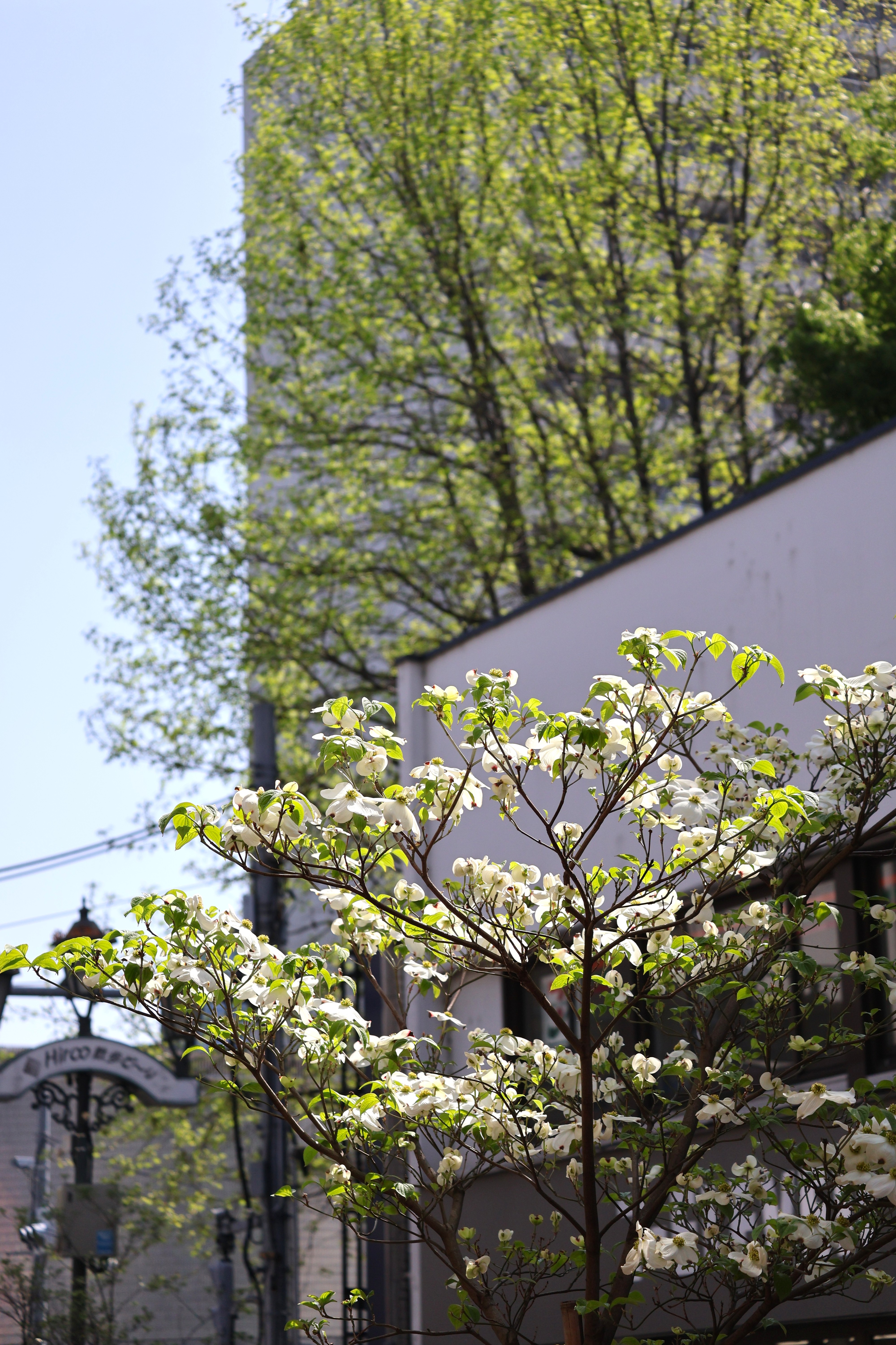 本来は上から眺めた方がハナミズキの美しさを満喫できますが、青空を背景に下から見ても本格的な春の訪れを感じられ愛おしく感じます。